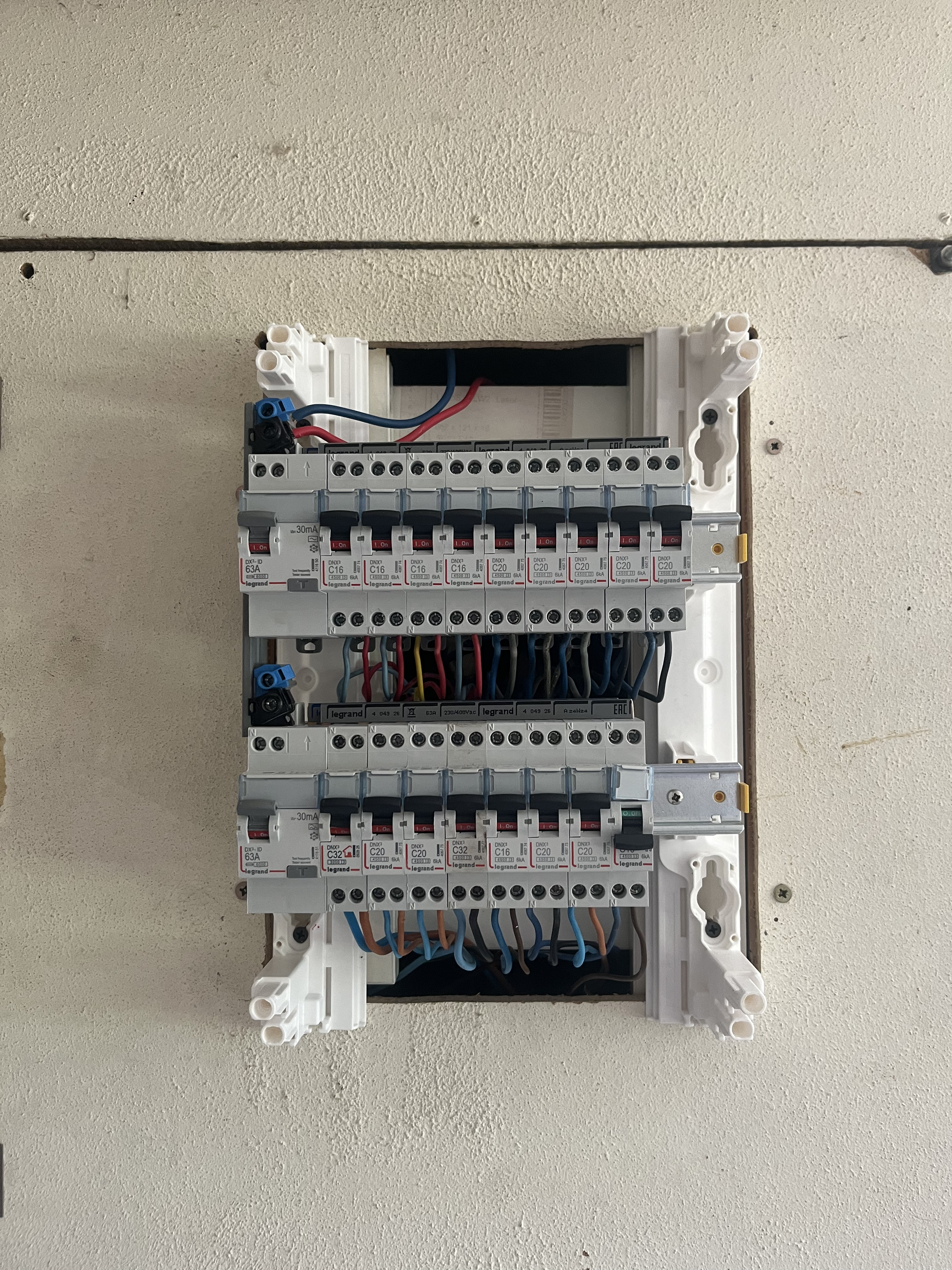 Création de nouvelles lignes depuis votre tableau électrique pour ajouter des prises, luminaires, interrupteurs, détecteurs de mouvement ou radiateurs selon vos besoins et dans le respect des normes électriques.